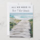 Nantucket white sand beach with wooden boardwalk wedding announcement and reception invitation "All we need is love & the beach." Add your wedding and reception details to the backside of card and invite family and friends to celebrate.