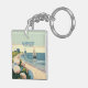 Nantucket Beach Hydrangeas Lighthouse Boat Retro Keychain