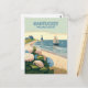 Nantucket Beach Hydrangeas Lighthouse Boat Retro Postcard