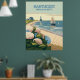 Nantucket Beach Hydrangeas Lighthouse Boat Retro Poster