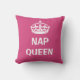This sassy pink cushion features a white crown and the slogan 'Nap Queen'. A perfect gift for a lady who loves her sleep!