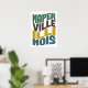 Chunky, bold and fun this cool typographic design says Naperville Illinois in a whimsical way with wavy retro colors in blue, brown, gold and green. Own or give the gift of Naperville, IL today!
