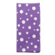 Dinner size napkin shown in a cute purple and white polka dots print.