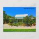 The image on this colorful postcard is the Chattel House in the Caribbean Garden within the Naples Botanical Gardens. It is one of seven distinct natural habitats and ecosystems within the 170-acre cultivated gardens and preservation land that feature over 1,000 species. There is a special emphasis on the ecosystems of the 26th parallel north. The Gardens are conveniently located only 3 miles from downtown Naples, Florida, and are a popular Wedding destination and venue for private events. The vibrant colors on the postcard consist mainly of sky blue, tropical green, and a bit of turquoise. The text on the front reads "Naples Botanical Garden" and the back includes a brief description of the image. All text may be deleted or edited for personalization at no additional charge. Photography by Glenda Motsavage, a Florida-based author and travel writer.