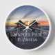 This is the beautiful pier off the coastal town of Naples, Florida. Florida's paradise coast and a popular destination. Historic pier known for fishing, bird-watching, dolphin-spotting & scenic sunset views. Personalized wall clock in trendy white.