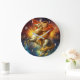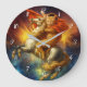 Napoleon Cat Riding Horse Through Galaxy Large Clock