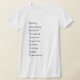My overall review is that the T-shirt is nice, it fits true to size however the font is significantly smaller than advertised and you can't read it. The printing is unreadable and there is a strain to read it. It does not look like the advertised product. Maybe the shirt color is darker or a larger more visible font should have been used. Photos with and without flash and font is barely legible.