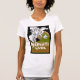 The material is a great quality that is hard to find with most tee shirts. Fabric was not see-through or thin at all, but was also very soft and comfortable. The shirt description states that it runs a little small, so I sized up one size for a perfect fit! I would definitely buy this type of tee shirt again because I love the fit and high quality fabric that I cannot find anywhere else. The printing was perfect and just as pictured. Loved the cute quote and really enjoy the tee in both the quality and design. I love quirky typography designs and funny quotes and I am extremely pleased with the overall quality and value I get at Zazzle!
