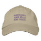 The design was easy to do with a number of options both the hat style, color and so forth. These aren't some printed letters, these are the real deal stitching. The two hats arrived quickly. I've used Zazzle in the past for shirts a number of times and this is the first time for a hat. Zazzle is absolutes the best in every respect; customer service, product selection and results. The embroidery was just right. My artwork was turned into a professional look thanks to Zazzle.