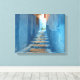 Cool perspective and angle. An old world narrow staircase in Morocco. The walls and stairway are painted a lovely shade of vivid blue giving this passageway an exotic flair.