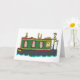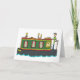 Fun narrowboat design features proud captain piloting narrow boat through the locks and waterways at a tranquil pace. Complete with ships dog, flowers and other details, a hand drawn graphic for canal boat dwellers, owners and holidaymakers.