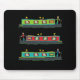 Fun graphic for narrowboat fans features three narrowboats with river pilots in bright canal boat style designs.