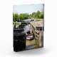 A photographic design of a canal narrowboat that has just entered the lock and waiting for the lock gates to close.