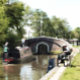 An art design of a narrowboat approaching a lock and a man fishing. Canal boats, known in the UK as narrowboats, were originally used to transport goods around the country. They are now used mainly for leisure and attract people from all over the world to enjoy our rural countryside. These boats look very pretty with their brightly colored cabins, traditionally blue, red or green. Flowers and castle designs also adorn the more traditional boats.