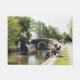 An art design of a narrowboat approaching a lock and a man fishing. Canal boats, known in the UK as narrowboats, were originally used to transport goods around the country. They are now used mainly for leisure and attract people from all over the world to enjoy our rural countryside. These boats look very pretty with their brightly colored cabins, traditionally blue, red or green. Flowers and castle designs also adorn the more traditional boats.