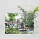 An art design of a man steering his narrowboat along the canal. Canal boats, known in the UK as narrowboats, were originally used to transport goods around the country. They are now used mainly for leisure and attract people from all over the world to enjoy our rural countryside. These boats look very pretty with their brightly colored cabins, traditionally blue, red or green. Flowers and castle designs also adorn the more traditional boats.