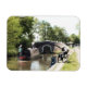 An art design of a narrowboat approaching a lock and a man fishing. Canal boats, known in the UK as narrowboats, were originally used to transport goods around the country. They are now used mainly for leisure and attract people from all over the world to enjoy our rural countryside. These boats look very pretty with their brightly colored cabins, traditionally blue, red or green. Flowers and castle designs also adorn the more traditional boats.