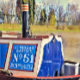 A retro art design of a moored narrowboat.