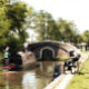 An art design of a narrowboat approaching a lock and a man fishing. Canal boats, known in the UK as narrowboats, were originally used to transport goods around the country. They are now used mainly for leisure and attract people from all over the world to enjoy our rural countryside. These boats look very pretty with their brightly colored cabins, traditionally blue, red or green. Flowers and castle designs also adorn the more traditional boats.