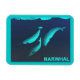 Features three narwhals, Monodon monoceros, swimming under the Arctic ice. The narwhal is related to the Beluga whale and lives in the Arctic year-round. They are found primarily in the waters of Greenland and Canada rarely south of 65°N latitude. Males weigh up to 1,600 kilograms (3,500 lb), females weigh around 1,000 kilograms (2,200 lb). The largest narwhal ever found weighed 3,500 pounds. They are shaped like a beluga and have about four inches of insulating fat. Narwhals normally congregate in groups of about five to ten individuals. In the summer, several groups come together forming larger aggregations. Narwhal is derived from the Old Norse word nár, meaning “corpse”, referring to the animal’s greyish, mottled pigmentation, like that of a drowned sailor. Narwhal are darkest when young becoming whiter with age. The most conspicuous characteristic of the male narwhal is its single 2–3 meter (7–10 ft) long twisted tusk. It is an incisor tooth that projects from the left side of the upper jaw and forms a left-handed helix. The narwhal’s scientific name, Monodon monoceros, is derived from “one-tooth one-horn.” The tusk can be up to 3 meters (9.8 ft) long—compared with a body length of 4–5 meters (13–16 ft)—and weigh up to 10 kilograms (22 lb). About one in 500 males has two tusks, which occurs when the right incisor, normally small, also grows out. A female narwhal may also produce a tusk, but this occurs rarely, and there is a single recorded case of a female with dual tusks. This behavior is thought to maintain social dominance hierarchies. At times, male narwhals rub their tusks together in an activity called “tusking.” The reason for this behavior is unknown; it may be to “scratch an itch,” (the base of the tusk is usually infested with lice); or tusk crossing may be a friendly greeting. The most broadly accepted theory for the role of the tusk is similar to the mane of a lion or the tail feathers of a peacock. It may help determine social rank, maintain dominance hierarchies or help young males develop skills necessary for performance in adul roles. Narwhals have rarely been observed using their tusk for fighting or other aggressive behavior or for breaking sea ice in their Arctic habitat. Narwhal usually proceed at a leisurely pace, slowly breathing and rolling, but are remarkably quick when they feel threatened. Sometimes they travel in small family groups and communicate by means of a great variety of squeals, trills, whistles, and clicks. Narwhals have a relatively restricted and specialized diet. Their prey is predominantly composed of Greenland halibut, polar and Arctic cod, shrimp and Gonatus squid. Additional items found in stomachs have included wolffish, capelin, skate eggs and sometimes rocks, accidentally ingested when whales feed near the bottom. How narwhal catch their prey is unknown. Some scientists believe narwhal stun their prey with sound as do dolphins . Narwhal exhibit seasonal migrations with high fidelity of return to preferred ice-free summering grounds, usually in shallow waters. In the winter, they are found primarily in offshore, deeper waters under thick pack ice, surfacing in narrow fissures in the sea ice, or leads. Narwhal from Canada and West Greenland winter regularly in the pack ice of Davis Strait and Baffin Bay along the continental slope with less than 5% open water and high densities of Greenland halibut. Feeding in the winter accounts for a much larger portion of narwhal energy intake than in the summer and, as marine predators, they are unique in their successful exploitation of deep-water arctic ecosystems. Most notable of their adaptations is the ability to perform deep dives. When on their wintering grounds, the narwhals make some of the deepest dives ever recorded for a marine mammal, diving to at least 800 meters (2,400 feet) over 15 times per day with many dives reaching 1,500 meters (4,500 feet). Dives to these depths last around 25 minutes, including the time spent at the bottom and the transit down and back from the surface. In the shallower summering grounds, narwhals dive to depths between 30 and 300 meters (90–900 feet). The only predators of narwhals besides humans are polar bears and orcas. Inuit people are allowed to hunt this whale species legally for subsistence. The northern climate provides little nutrition in the form of vitamins which can only be obtained through the consumption of seal, whale, and walrus. Almost all parts of the narwhal, meat, skin, blubber and organs, are consumed. Mattak, the word for raw skin and blubber, is considered a delicacy, and the bones are used for tools and art. In some places in Greenland such as Qaanaaq, traditional hunting methods are used, and whales are harpooned from handmade kayaks. In other parts of Greenland and northern Canada high-speed boats and hunting rifles are used. While populations appear stable, the narwhal has been deemed particularly vulnerable to climate change due to a narrow geographical range and specialized diet. Narwhals that have been brought into captivity tend to die quickly. In Inuit legend the narwhal’s tusk was created when a woman with a harpoon rope tied around her waist was dragged into the ocean after the harpoon had struck a large narwhal. She was transformed into a narwhal herself, and her hair, that she was wearing in a twisted knot, became the characteristic spiral narwhal tusk. Some medieval Europeans believed narwhal tusks to be the horns from the legendary unicorn. As these horns were considered to have magic powers, such as the ability to cure poison and melancholia, Vikings and other northern traders were able to sell them for many times their weight in gold. The tusks were used to make cups that were thought to negate any poison that may have been slipped into the drink. During the 16th century, Queen Elizabeth received a carved and bejeweled narwhal tusk for £10,000—the cost of a castle (approximately 