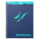 Three narwhals, Monodon monoceros, under the polar ice. Customizable text reading, "NARWHAL" also appears.