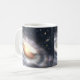 A growing black hole, called a quasar, can be seen at the center of a faraway galaxy in this artist's concept. Astronomers using NASA's Spitzer and Chandra space telescopes discovered swarms of similar quasars hiding in dusty galaxies in the distant universe. The quasar is the orange object at the center of the large, irregular-shaped galaxy. It feeds a central super massive black hole. As the black hole feeds, the gas and dust heat up and spray out X-rays, as illustrated by the white rays.