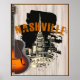 Vintage Nashville skyline design with an acoustic guitar to celebrate country music and a trip to Music City USA.