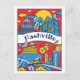 The perfect postcard to say "Hi" to a friend from Nashville, Tennessee! This design features various Nashville landmarks, in a fun blue, red, and yellow color scheme. From top left clockwise: The State Capitol Building, The Ryman Auditorium, The AT&T a.k.a. "The Batman" Building, Korean Veterans Bridge crossing over the Cumberland River, and the Parthenon in Centennial Park.