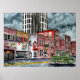 nashville tennessee country music capital art Nashville tn WATERCOLOR PAINTING CITY ILLUSTRATION historic broadway street vintage Chevy truck and old storefronts and cafes Stores bars and restaurants include The Stage Wildhorse Saloon and Jacks