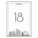 An elegant yet minimal wedding table number card for a marriage taking place in the wonderful city of Nashville, Tennessee. It features a simplified table number resting above a stylized version of the popular city's unique skyline.
