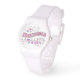 I only have one complaint. I ordered the watch with clear case and strap, and what was sent was white case and strap. I'm going to keep it because 1) it looks very nice in white, and 2) it would take too long to get a replacement made and sent in time for my occasion. Aside from the mix up with the color, the watch does look very good in white. The purple dial is actually sparkly which did not show in the online images. That was a nice surprise. If you like Swatch watches this is very similar to those. It's 33.6mm in diameter, 10.5mm thick, and 40.6mm lug to lug. Stainless steel case back says 3ATM/30m WR, so no swimming or showering or submerging this one. If you like Woodstock, this is a great choice.