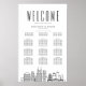 A unique city deco-themed large 12-table seating chart poster tailored specifically to your future wedding in the beautiful city of Nashville. All elements of this item are unlocked and customizable by using the customization function. This one features a special guest table in addition to 9 other tables.