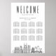 A unique city deco-themed large 12-table seating chart poster tailored specifically to your future wedding in the beautiful city of Nashville. All elements of this item are unlocked and customizable by using the customization function.