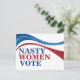 This political feminist postcard reminds politicians everywhere that Nasty Women vote and we will be out there voting blue in the 2020 election against Donald Trump. Support womens rights and equality with a Democrat straight party ticket.