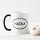 Check out this Nataly mug! Is your name Nataly? Or do you have a wife, girlfriend, female family member or female friend named Nataly? If so, this "Name Stamp" mug is exactly the gift that you're looking for! The design features "Nataly" in big black lettering surrounded by two ovals, one thin and one thick.