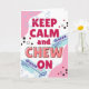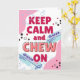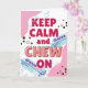 National Bubble Gum Day, February 3rd, paper greeting card. Fun chewing gum puns inside. Image of bubble gum, Be Calm and Chew On, and bubbles. Art, image, and verse copyright © Shoaff Ballanger Studios, 2022.