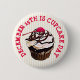 Pretty chocolate cupcake with a cherry on top button to commemorate National Cupcake Day, adorable for restaurant employees or bakeries.