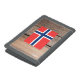 National flag of Norway on an dark wood background. Please note, the background is an photo of wood, unless noted specifically above.