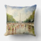 This throw pillow is decorated with a watercolor painting of a Summer day at the National Mall,