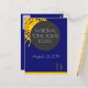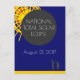 Dark gray image symbolizes the Moon which covers yellow and orange image of the shining sun, all at the top and at the upper left corner of a card. White text National Total Solar Eclipse against the Moon. White text August 21, 2017 under the Moon against dark blue background. Yellow line at the bottom symbolizes the Earth. Two dark male and female silhouettes in the right corner of a card watch the natural astronomic phenomenon. Informative text on the back of the card. You can change or delete template images and texts. One-of-a-kind postcard for anyone.