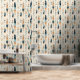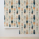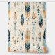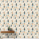This stunning wallpaper has a Native American feather pattern in addition to polka dots, in tans, peach and blues against a cream colored background.
