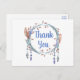 Native American Blue Tribal Feather Boho Thank You Postcard
