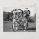 Old 1930s photo of Native American boys in ceremonial costumes with headdresses, with bicycle, 1938 or 1939.