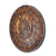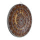 A dart board that serves as decoration, as well, showing an ancient Native American art work.