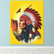 Native American Chief Portrait looking far away in a wild desert Landscape on Sunset Background, Original Vector Illustration Copyright BluedarkArt TheChameleonArt