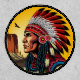 Native American Chief Portrait looking far away in a wild desert Landscape on Sunset Background, Original Vector Illustration Copyright BluedarkArt TheChameleonArt