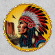 Native American Chief Portrait looking far away in a wild desert Landscape on Sunset Background, Original Vector Illustration Copyright BluedarkArt TheChameleonArt