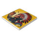 Native American Chief Portrait looking far away in a wild desert Landscape on Sunset Background, Original Vector Illustration Copyright BluedarkArt TheChameleonArt
