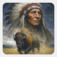 Native American Chief with Charging Buffalo Square Sticker