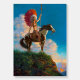 Native American: Chieftess, American Indian: The Stargazer's Spear - In the rugged beauty of the 1930s American West, a young woman named Elara defied expectations. With fiery red hair, emerald eyes, and a spirit as wild as the prairies, she was a force to be reckoned with. - Elara's passion for horses was unmatched. She spent countless hours riding her beloved stallion, Zephyr, across the vast plains. Her skill with a spear was legendary, her aim as precise as an eagle's. - One day, while exploring a remote canyon, Elara stumbled upon a hidden Native American encampment. Intrigued by their culture and traditions, she sought permission to join their tribe. Impressed by her courage and skill, the elders welcomed her, naming her "Stargazer," a symbol of her unwavering spirit. - Elara embraced her new identity, donning a magnificent feathered headdress and a buckskin dress adorned with intricate beadwork. She learned the ways of the tribe, becoming a respected member. - When white settlers threatened the tribe's land, Elara, with her spear, led the defense. Her bravery intimidated the settlers, forcing them to retreat. - Elara continued her life on the prairie, her story a testament to a woman's strength and courage. - 1932 painting by Edward Mason Eggleston (1882-1941), dead over 80 years ago and art is in Public domain. Copyright has not been renewed in the US Copyright Office. The copyright has also expired in the countries with a copyright term of life of the author plus 70 years or less.
